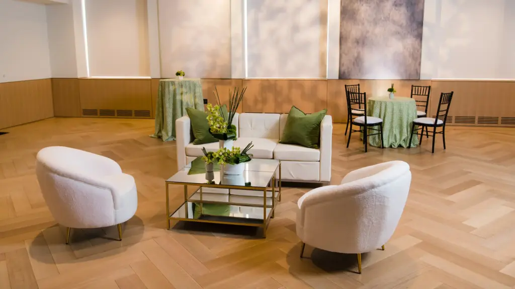 With wooden parquet floors, and large glass windows overlooking the beautiful St. Alphonsus parish, from corporate events, receptions, banquets, and more your guests are sure to enjoy your event. See below for details about how you can adjust our incredible mutliuse space to fit the specific needs of your next events!